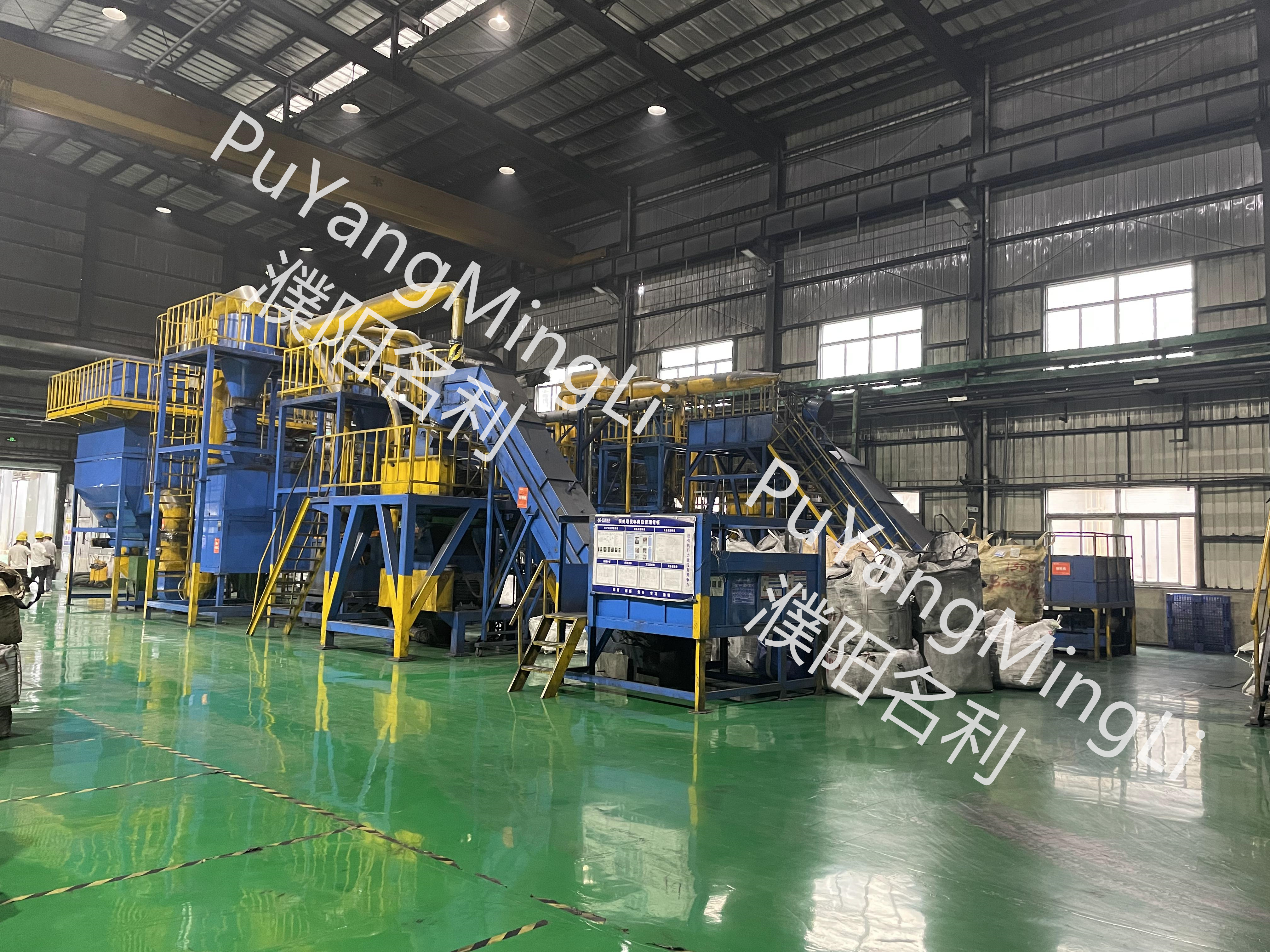 該生產(chǎn)線(xiàn)設備是用于從廢鋰電池中回收金屬元素。廢舊鋰電池帶電或者經(jīng)過(guò)放電以后,進(jìn)行一級撕碎和破碎,破碎后物料通過(guò)輸送機,在輸送過(guò)程中或加溫烘干處理,再由分選設備祛除其中的鐵殼與隔膜紙之后就剩下了鋰電池的正負極片混合物料,然后再由細碎破碎機和水磨搓球機(制粒機)進(jìn)一步的細碎及靜電分離、篩分處理,將其中的鋁、銅和極片粘合物分離回收?;厥仗幚磉^(guò)程中收塵器收集產(chǎn)生的粉塵,廢氣由環(huán)保設備處理在鋰電池回收過(guò)程種產(chǎn)生的有害氣體。